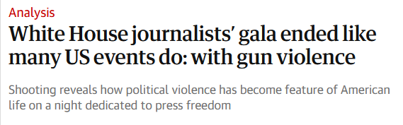 Во время приема Ассоциации корреспондентов при Белом доме, на котором присутствовал президент США, произошла стрельба. Первых лиц государства эвакуировали, мероприятие отложено на месяц. Предполагаемый стрелок задержан, его мотивы пока неизвестны.