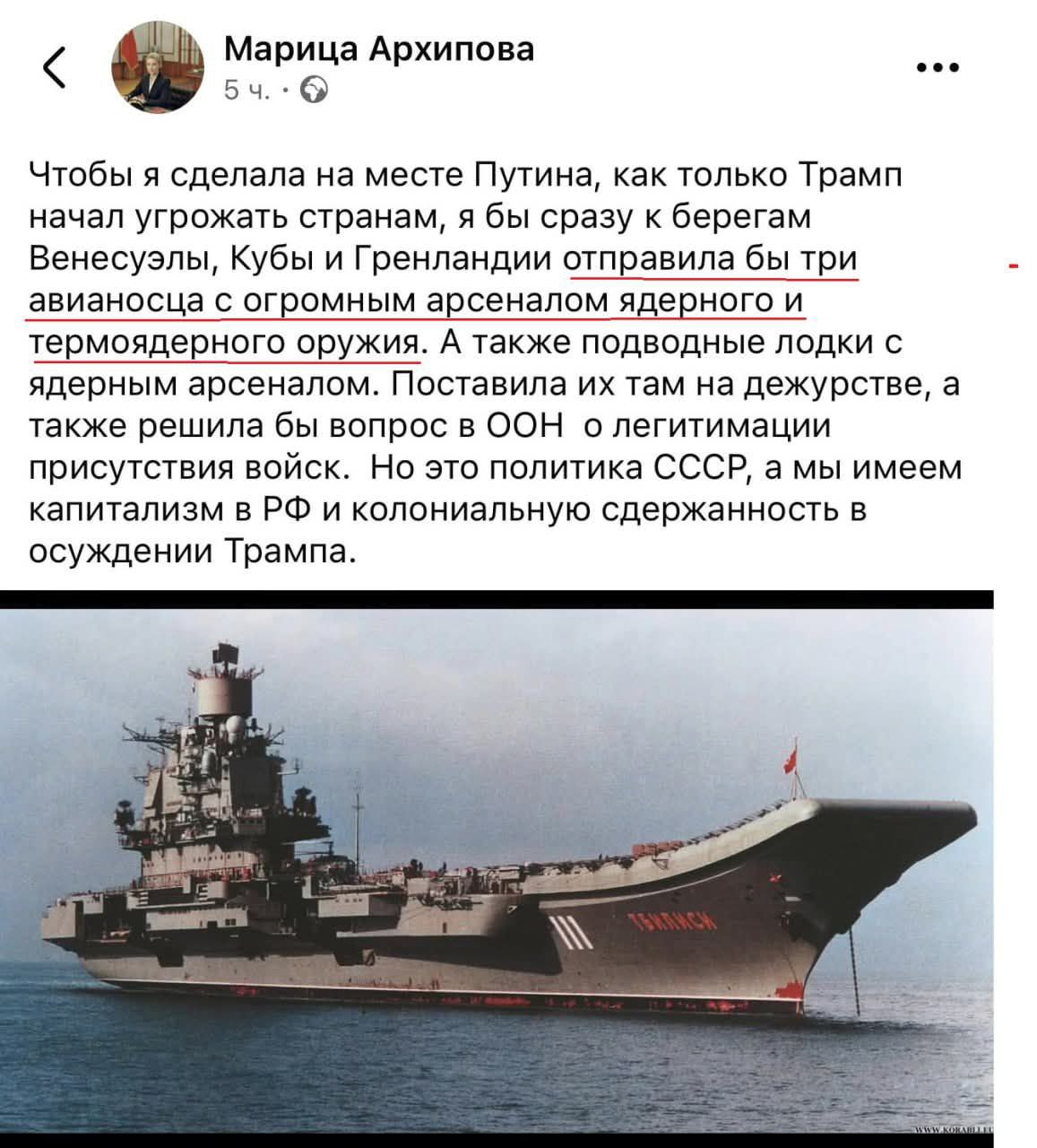 Смешно. Ага. Вопрос - видно ли по осадке, груз в 5-10-20 тонн? Я волне допускаю что РФ начала делится критическими ядерными технологиями с Ираном/Венесуэлой/КНДР в обмен на реальную военную помощь в виде наемников и снарядов. Запас урана в бочках + набор критичных устройств для небольшого завода по обогащению приблизительно где то так и может весить.
