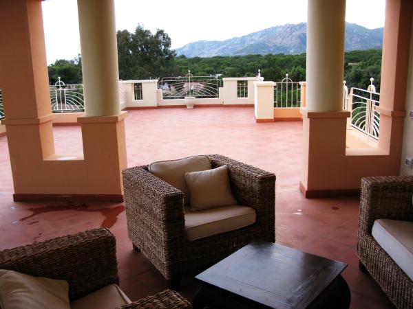 Холлы отеля оформлены в современном стиле, с мраморными полами, изящными колоннами и дизайнерскими светильниками. Уютные мягкие кресла и диваны, обитые яркими драпировками, напоминают о традициях Сардинии. Из окон номеров открывается вид на море или парк. Живописное побережье рядом с отелем идеально не только для купания, но и для занятия водными видами спорта; в отеле организуются морские прогулки на яхтах и лодках.