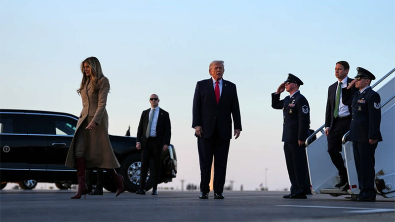 Президент Трамп и Мелания Трамп прибывают в международный аэропорт Палм-Бич в Вест-Палм-Бич (Мэтт Рурк/AP)