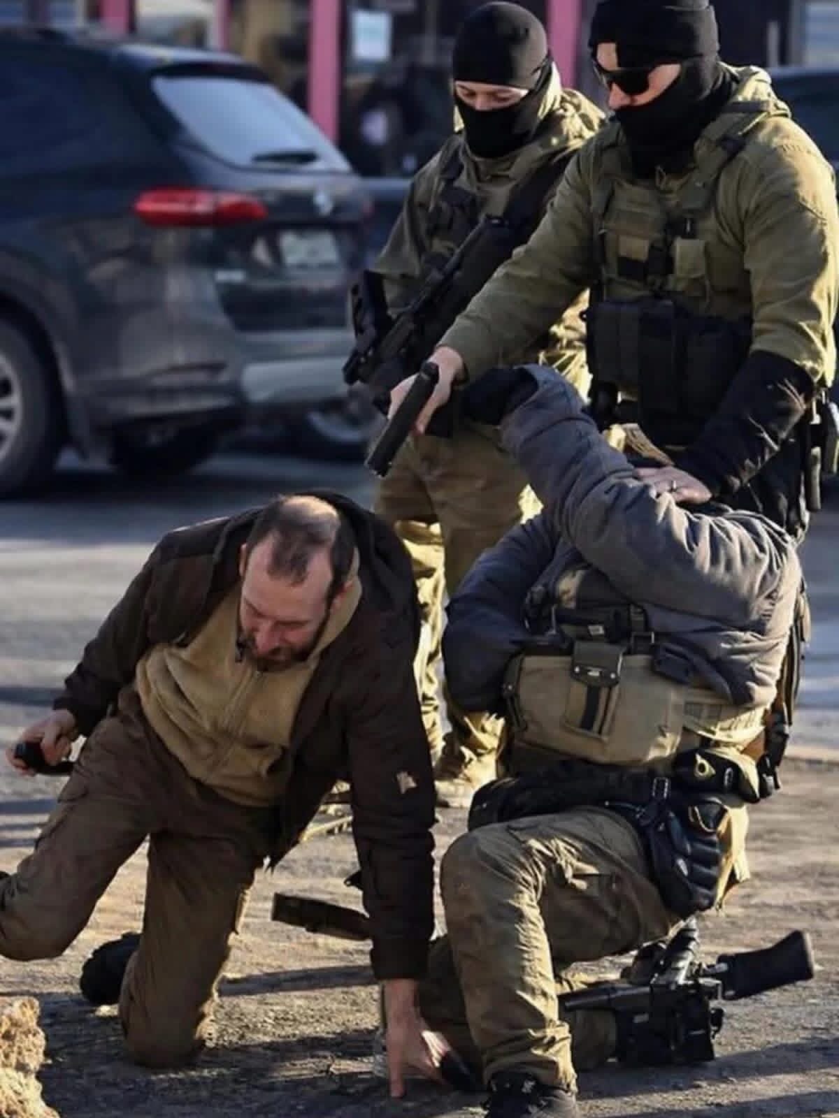 Это ж нейросетка. У агента, стоящего на правом колене, если верить этой фотке, отсутствует голова.
