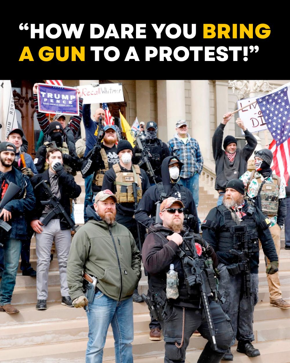 Я привела пример к тому, что трамписты и это фото могут оправдать. Именно этот отрывок, что на фото, Гера проигрывал много раз в во вчерашнем видео, чтобы доказать, что стрельба была оправдана.