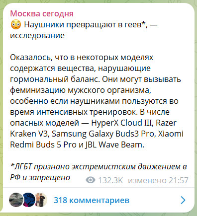 Откуда ТГ "Москва сегодня" взял конкретные модели наушников, и почему именно наушники - неизвестно.