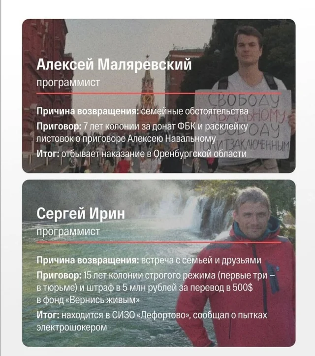 По сути те, кто вернулся и попал за решетку не отличаются от тех, кто не уехал и попал за решетку. Всех их объединяет недооценка людоедства режима. И я им искренне сочувствую и желаю освобождения, потому что понимаю насколько тяжело уезжать без подготовки в условиях когда такая опасность не очевидна.