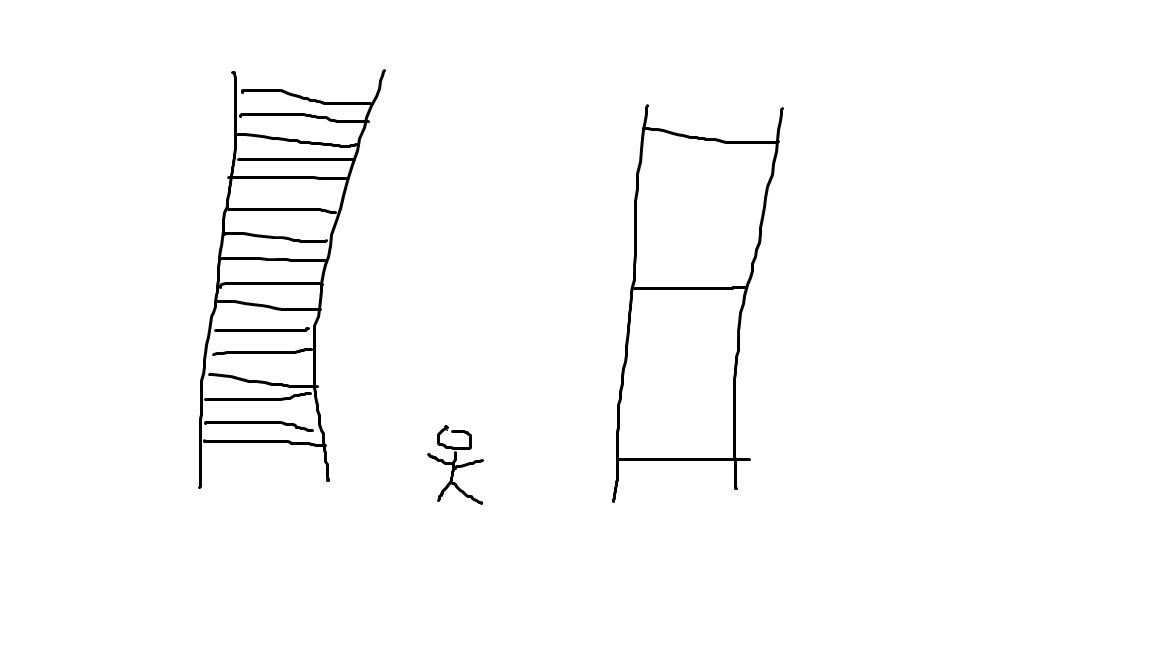 Нельзя залезть наверх по правой лестнице, ну никак. Только мелкими шагами по левой