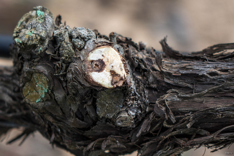 Вот, например, справа - погибшая часть лозы.