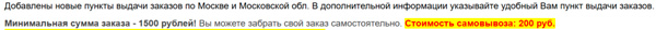 А по сабжу - да, если магазин арендует точку выдачи и не рассчитывает на мегадоход, то часто берут деньги за самовывоз. В результате покупать в "Лабиринте" стало интересно что-то очень дорогое или много.