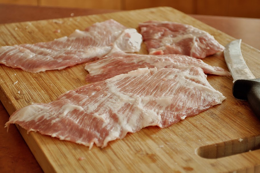 То что я понял, это сейчас я вам расскажу, но имейте ввиду, что это просто мои домыслы. Вот съезжу в Испанию, найду там мясника, согласного мне показать что откуда, тогда вам подтвержу или опровергну мои домыслы. Все эти мои непонятки они ведь от того, что туша свиная по разному разделывается у нас на берегах Св.Лаврентия и у них на Пиренеях. Я так подозреваю, что это климатом обусловлено. Ведь в холодных странах свиней обычно резали зимой, туша остывала быстро, и ее уже потом рубили на большие куски, а потом резали на порции и все такое. А в теплом климате зимы-то такой нету, и тушу спокойно полосовали ножом и сало снимали огромным пластом с плеча, спины и бока, это совсем не так сложно если температура туши выше 4С. А вот если ниже, то такой фокус усложняется в разы. Вот на северах наших и машут мясники топорами, правда нынче на пилы их заменили. Но традиции разделки сохранились. Вот я так и сяк посмотрел и есть у меня сильное подозрение, очень близкое к уверенности, что это мышечная крышка со свиной корейки.