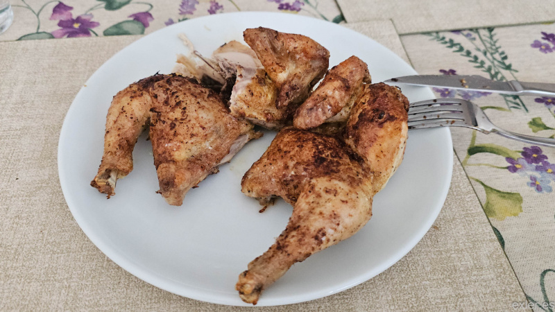 Мы любим курицу и часто едим курицу, а точнее - куриные ножки или небольших цыплят (в "Меркадоне" они называются picantones, пикантные). Обычно мы приготовлением не заморачиваемся: в аэрогриль, посыпать смесью для стейков Montreal (мне она нравится заметно больше, чем их же смесь для курицы) или смесью, которую я делаю сам, 20 минут на максимальном нагреве - готово.