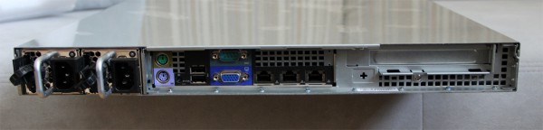 А это задняя часть с портами. Обратите внимание на то, что у сервера - два блока питания (для надежности)! Второй работает в резервном режиме.
