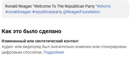 Немецкий ютубчик отмечает это видео как "синтезированное или изменённое содержание".