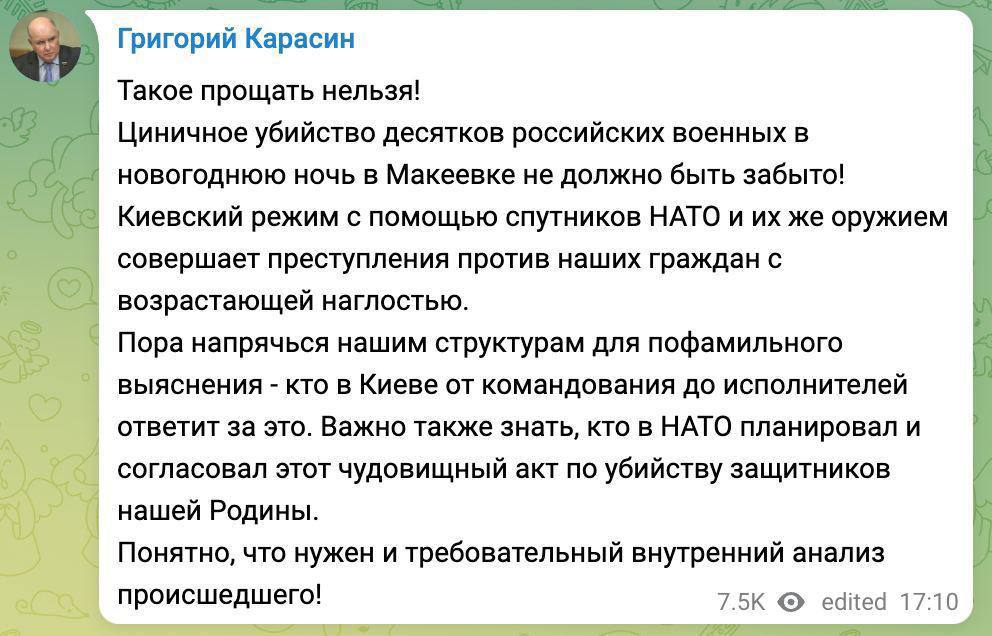 В ночь на первое января ВСУ нанесли ракетный удар по зданию ПТУ в Макеевке, ДНР, где располагались мобилизованные. С украинской стороны говорят о сотнях погибших, с российской стороны сведения поступают разные - от пяти погибших плюс кот Владимир до несколько десятков погибших и многих раненых. Однако вой по Z-каналам стоит нешуточный, так что потери явно большие.