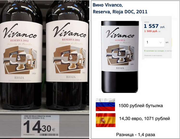 В среднем же цена на испанские вина в России всего на 40-75% выше, чем в Испании.