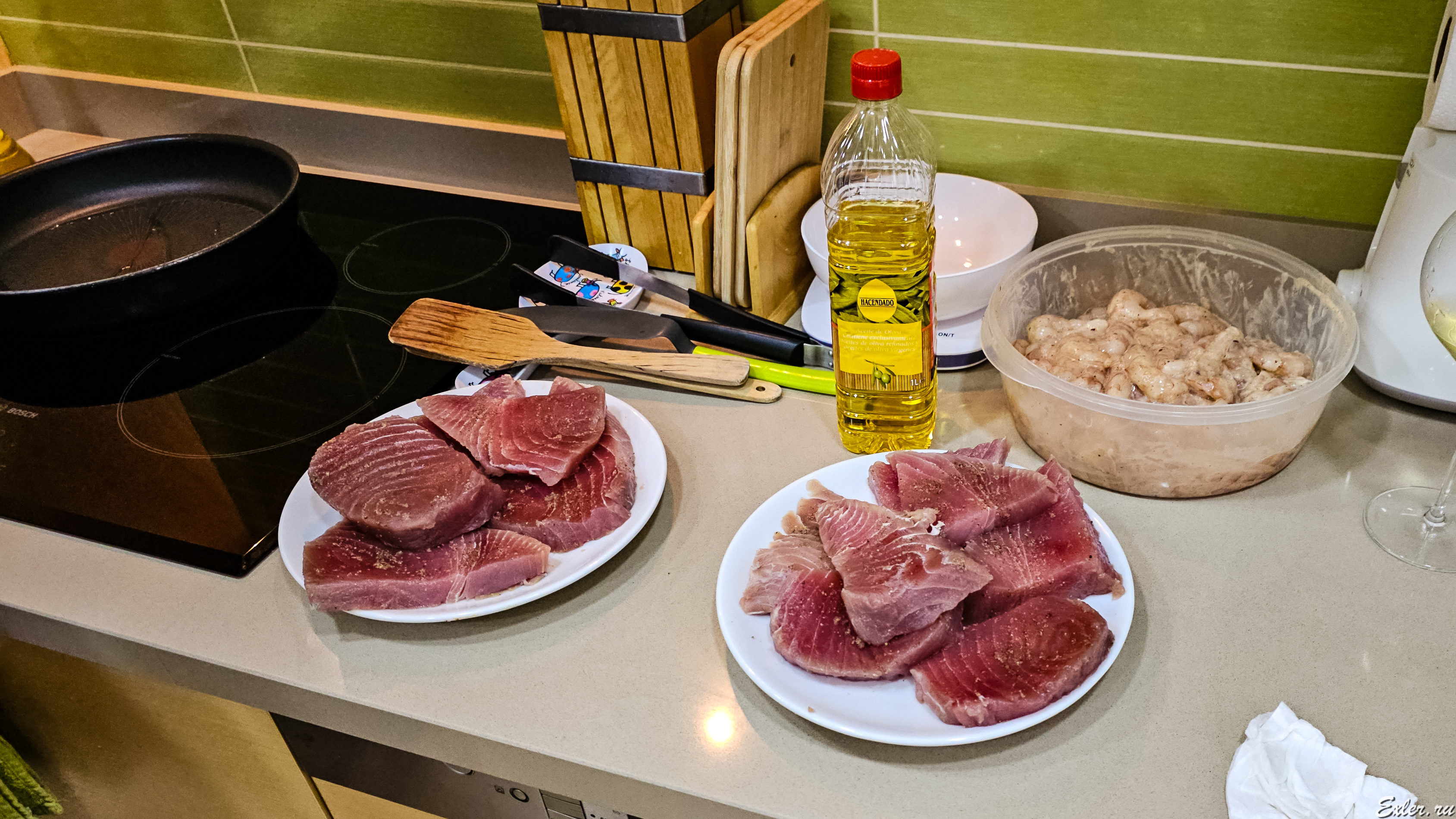 В тунца, для меня конкретно, самая "соль" как раз в соли. Очень важно соблюсти свой баланс соли. Для меня тунец должен быть чуть более солёным, чуть больше специй,чем при приготовлении трески например.