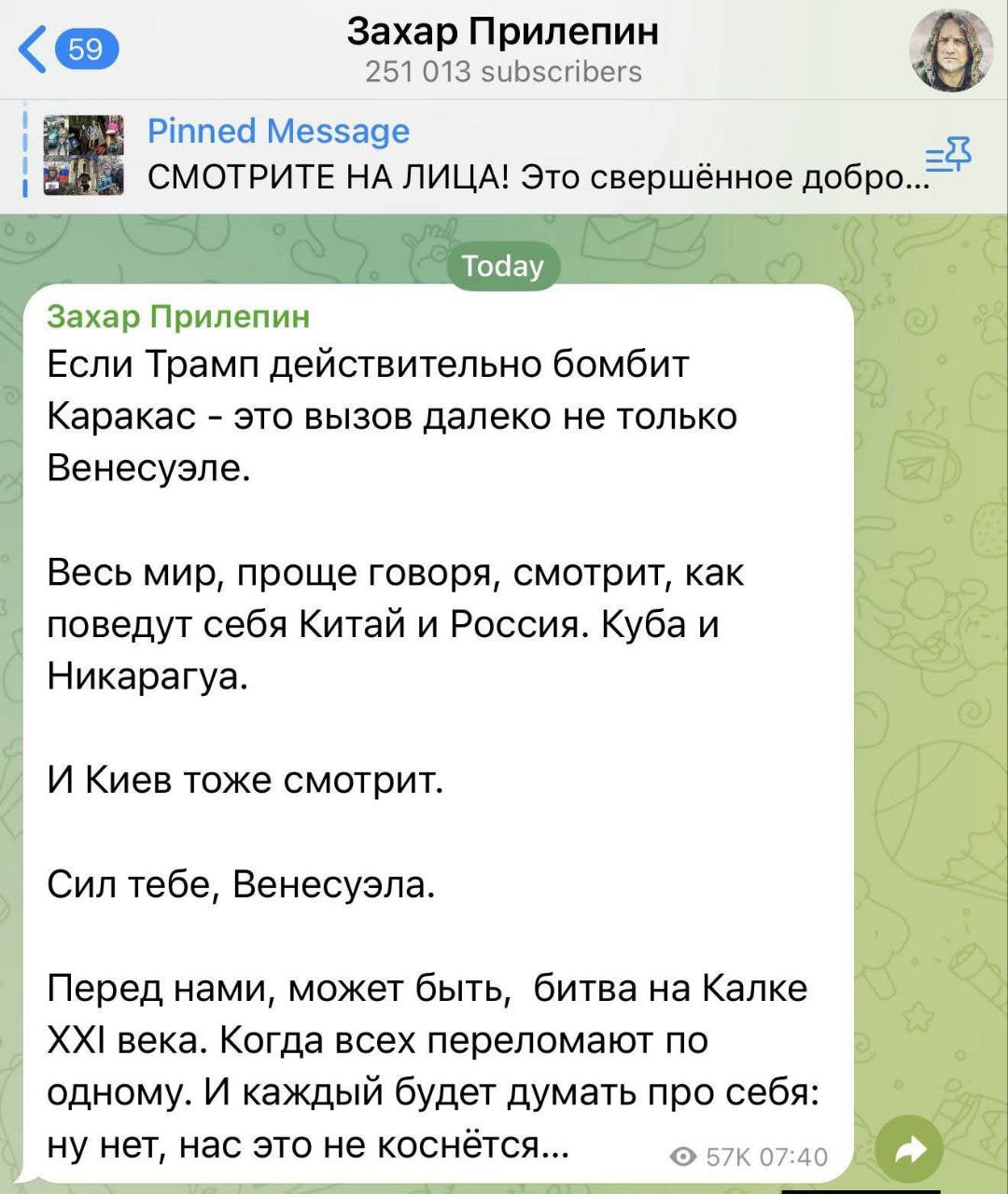 А что сделал Трамп? Заявил, что он уже "обо всем договорился" с вице-президентом Венесуэлы Делси Родригес, которая давняя подельница Мадуро, и у нее руки по локоть в крови точно так же, как и у самого Мадуро. То есть Трамп считает, что вся вертикаль власти, выстроенная Мадуро, без Мадуро вдруг начнет работать так, как ему, Трампу, надо? И с чего вдруг такая уверенность? Это все равно что похитить из РФ Путина, а потом заявить, что вся полнота власти там переходит к Патрушеву, и что он с Патрушевым "обо всем договорился".