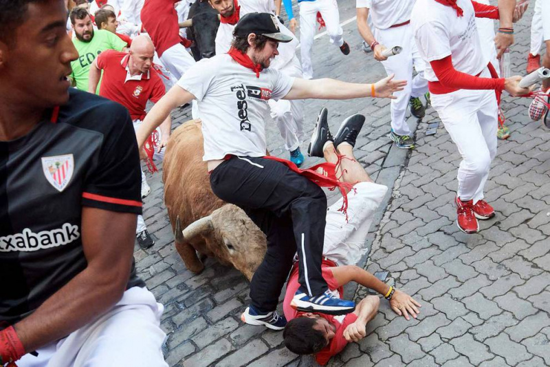 Бег с быками во время нынешнего праздника Сан-Фермин прошел вчера. Серьезно пострадало пять человек. Но никого так и не убили, так что, можно сказать, праздник не очень удался.