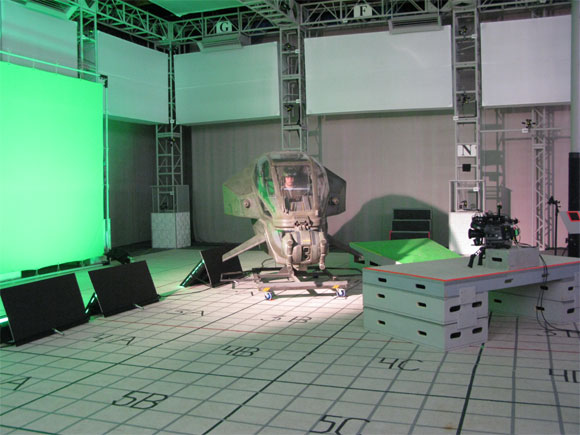 Площадка выглядела следующим образом: огромный зеленый задник, кабина самолета с актером, специальная камера, мониторы, компьютеры.