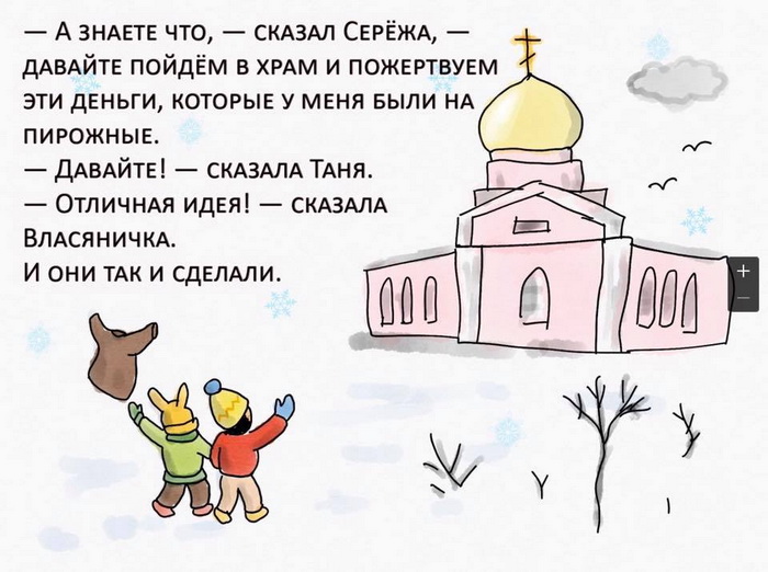 с другой стороны, цель этого "комикса" привить детям мысль, что ходить в храм, а особенно отдавать свои деньги - это прекрасно.