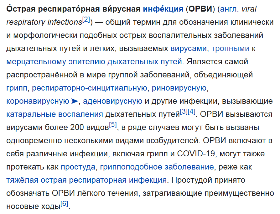 А лечения часто всё равно нужны, тк на фоне борьбы с орви падает иммунитет и легко двинуть кони от подхваченного воспаления лёгких, к примеру. Поэтому, в планах лечения есть стадия, когда назначают и антибиотики. Нет, не против вируса, а когда становится понятно, что чел уже либо подхватил доп инфекцию либо есть большой шанс, что вот-вот подхватит. Либо начальная диагностика была неверна - теоретически тут можно делать анализы, но в разгар эпидемии орви там перегруз, ну, и действует правило Парето - в 80-90% это и правда орви.