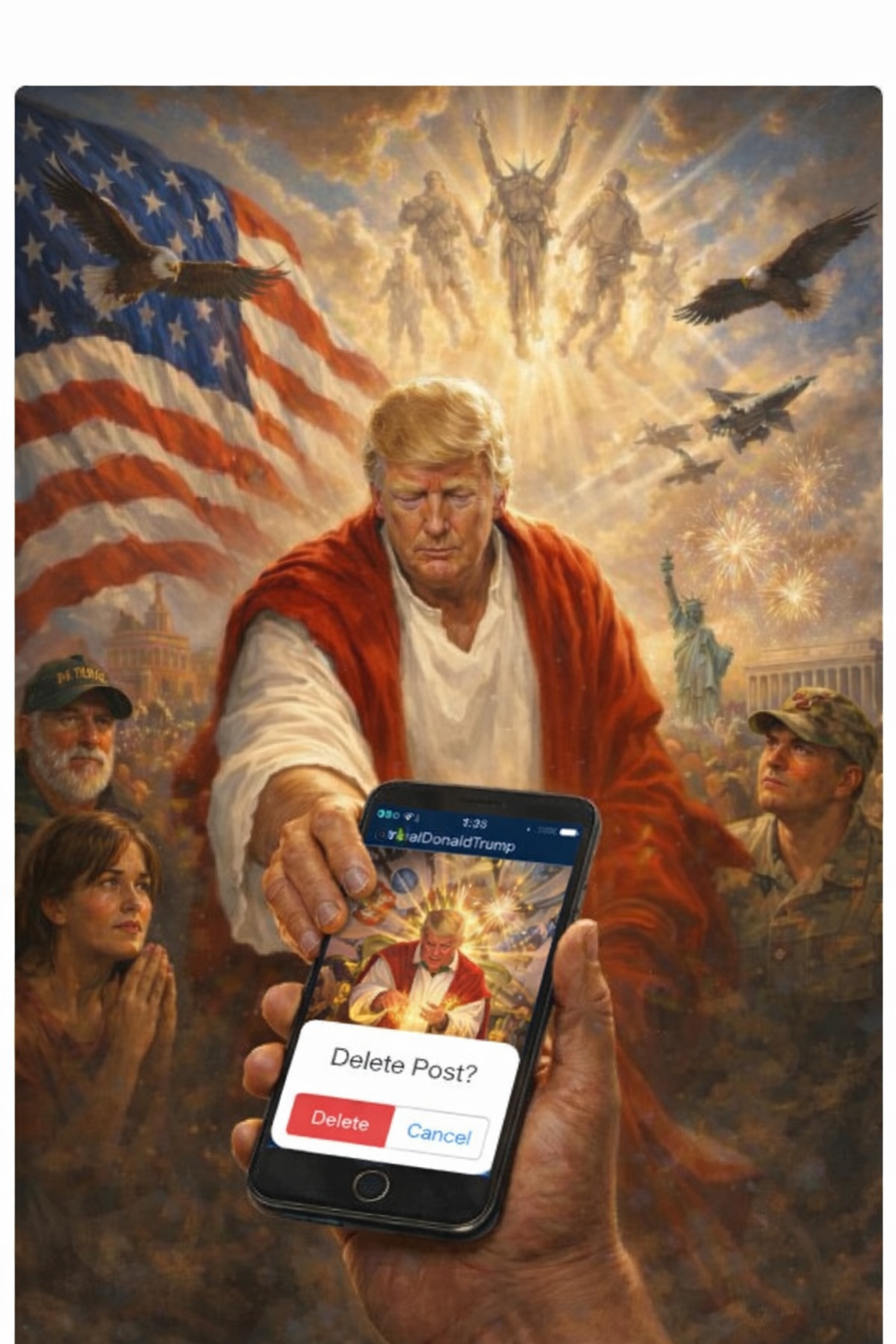 Не, ну вы только представьте, чтобы Байден такие картинки постил 😄 Да трамписты бы на дерьмо тогда изошлись - не дожидаясь выборов. Капитолий бы пал в ближайшие выходные.