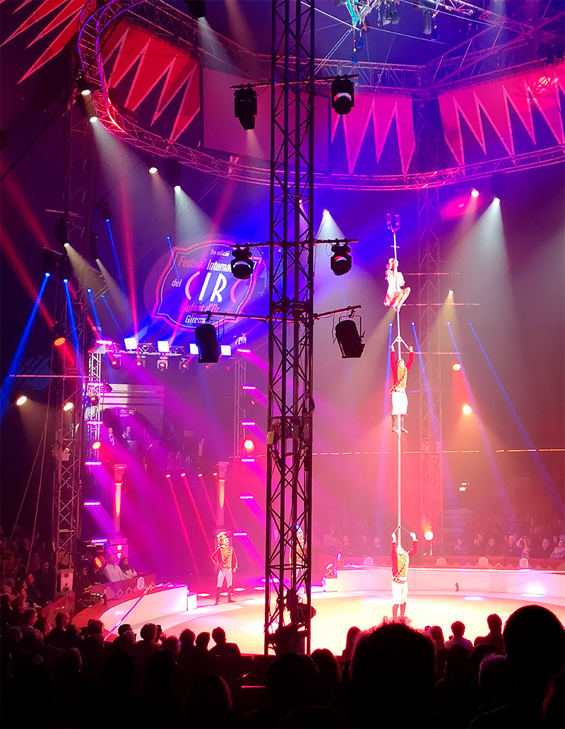 В конце февраля в Жироне проходит интереснейший цирковой фестиваль "Золотой слон", который мы стараемся не пропускать. Там сначала несколько раз проходят разные представления "Голубое шоу" и "Красное шоу", а потом лучшие номера из этих двух шоу объединяют для финала под названием "Золотое шоу", после которого и объявляют победителей. (Вот мой репортаж с прошлого года.) Из России - канатоходцы труппы Краснова, акробаты на шестах Саралаева, жонглерка "Мадмуазель Ди-Ди", акробатика на шесте Дениса Дегтярева, акробаты группы Плотникова, акробаты на велосипедах BMX Bro, ну и Мухамади Шарифзода из Таджикистана - он учащийся Московской цирковой школы. Также был отличный дуэт из Украины - Данило и Оскар.