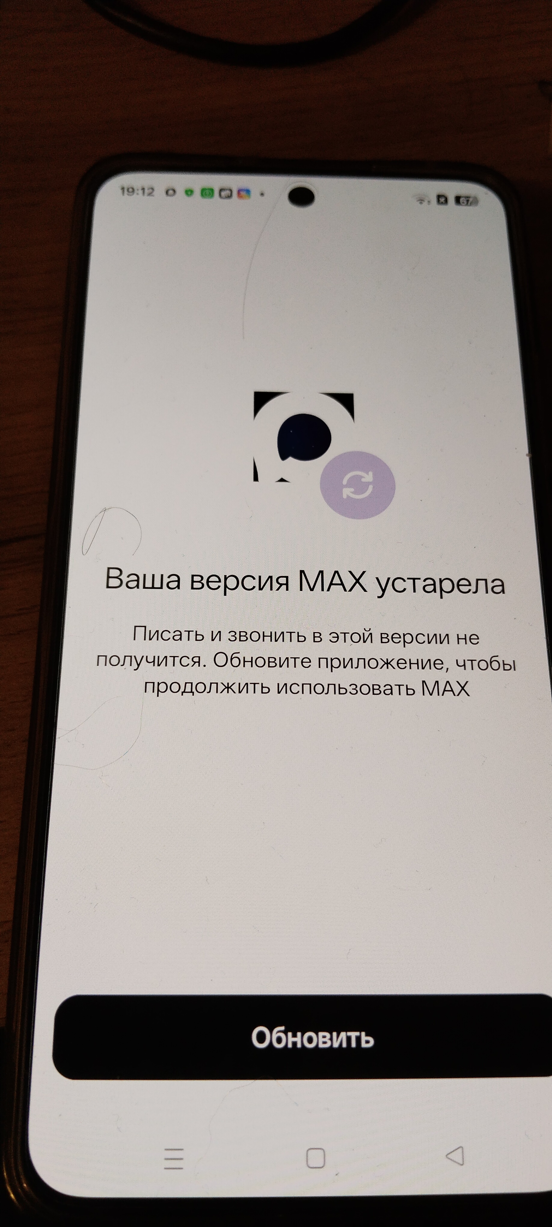 Кстати, сегодня, вот, такое сообщение (поставил Макс на специально купленный дешёвый телефон по требованию с работы). Не припомню, чтобы с нормальными мессенджерами у меня подобные сообщения были.