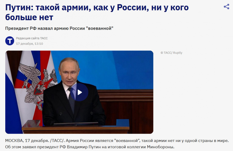 Путин заявил, что армии больше нет!