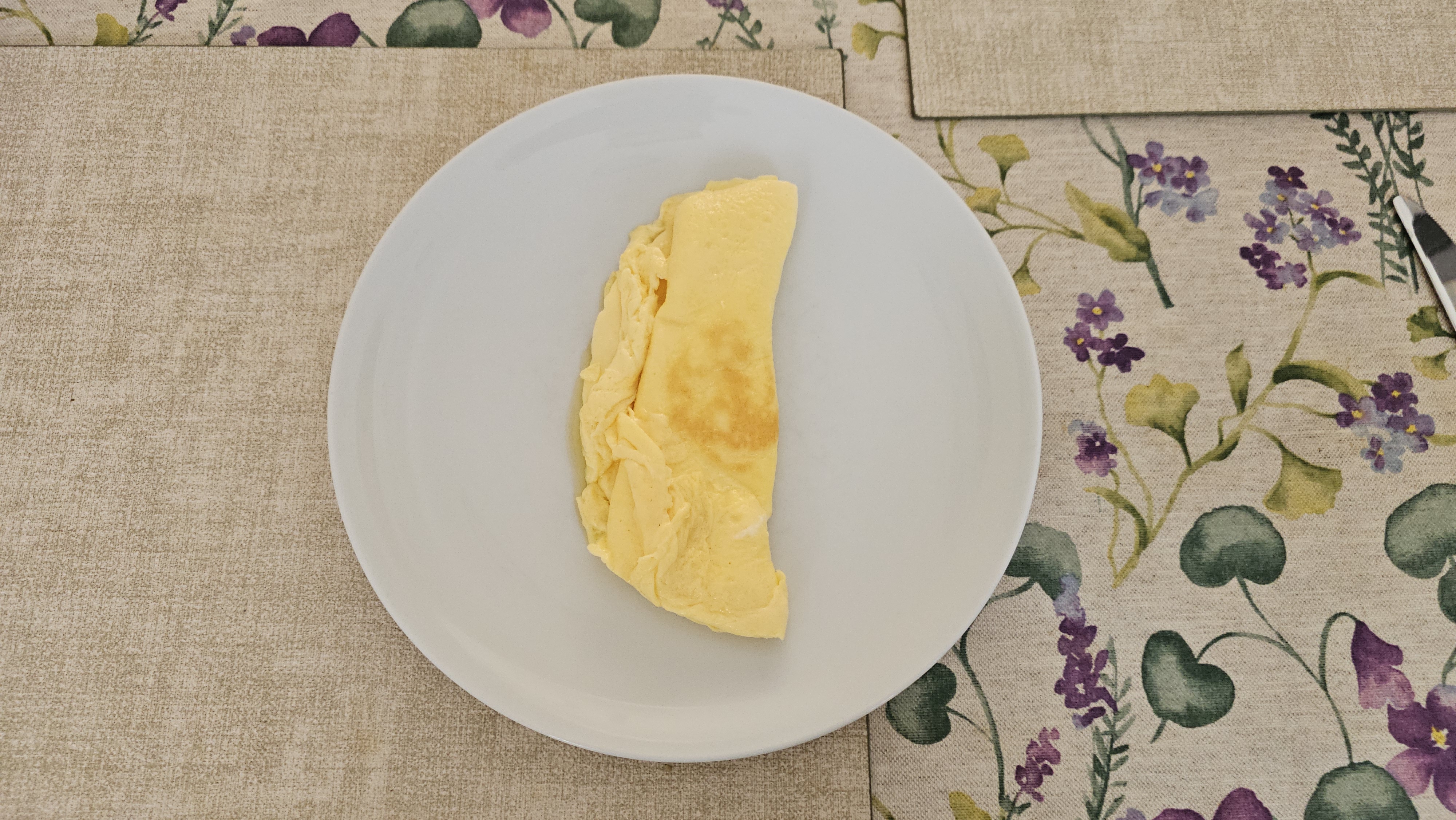 Готовый омлет выглядит вот так. На вкус - тот самый воздушный и нежнейший омлет от итальянского шеф-повара. И никаких особых секретов. Только сливочное масло, вовремя поймать момент, сложить и быстро убрать со сковородки. Вообще бомба, а не омлет! Кстати, понятное дело, туда внутрь можно что-то положить - сыр или еще что-то.