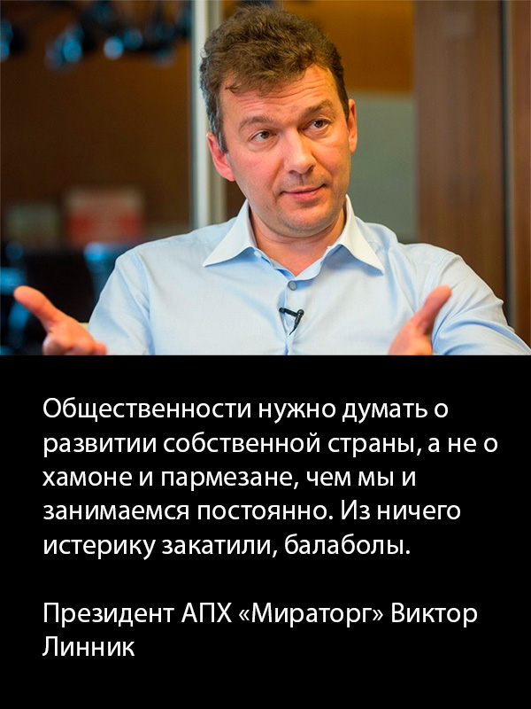 Нисколько не защищаю Мираторг, и сам отказываюсь от их продукции после подобного заявления Линника.