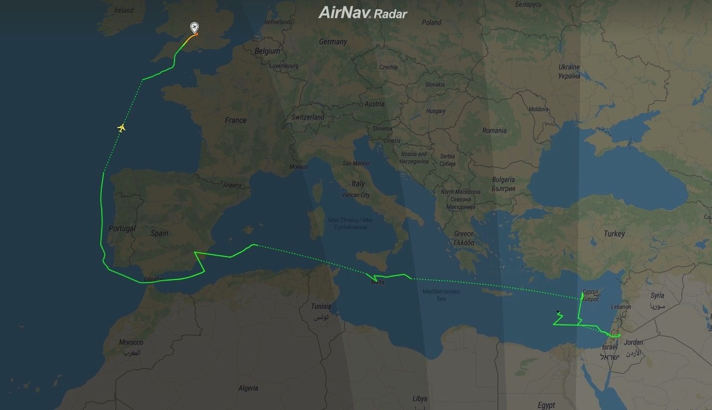 На фото с Флайтрадар - траектория полета стратега В-1 с его базы в Англии в район боевых действий.