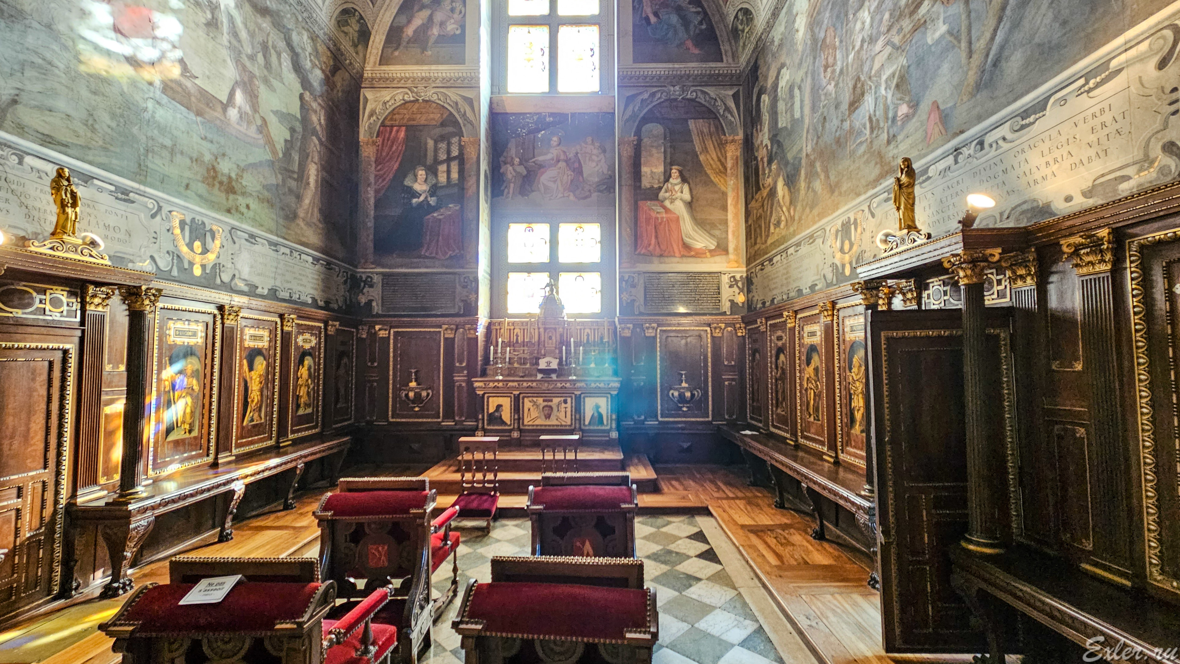 Вот такой замок. Там часть богато декорированных залов была закрыта: то ли из-за реставрационных работ, то ли еще из-за чего-то. Я когда смотрел галереи фотографий из этого замка, нашел фотографии по крайней мере пяти залов, в которые мы не заходили.