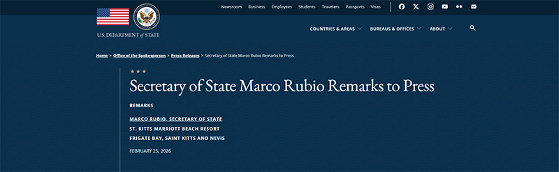Из заявления государственного секретаря Марко Рубио для прессы от 24 февраля 2026 года.