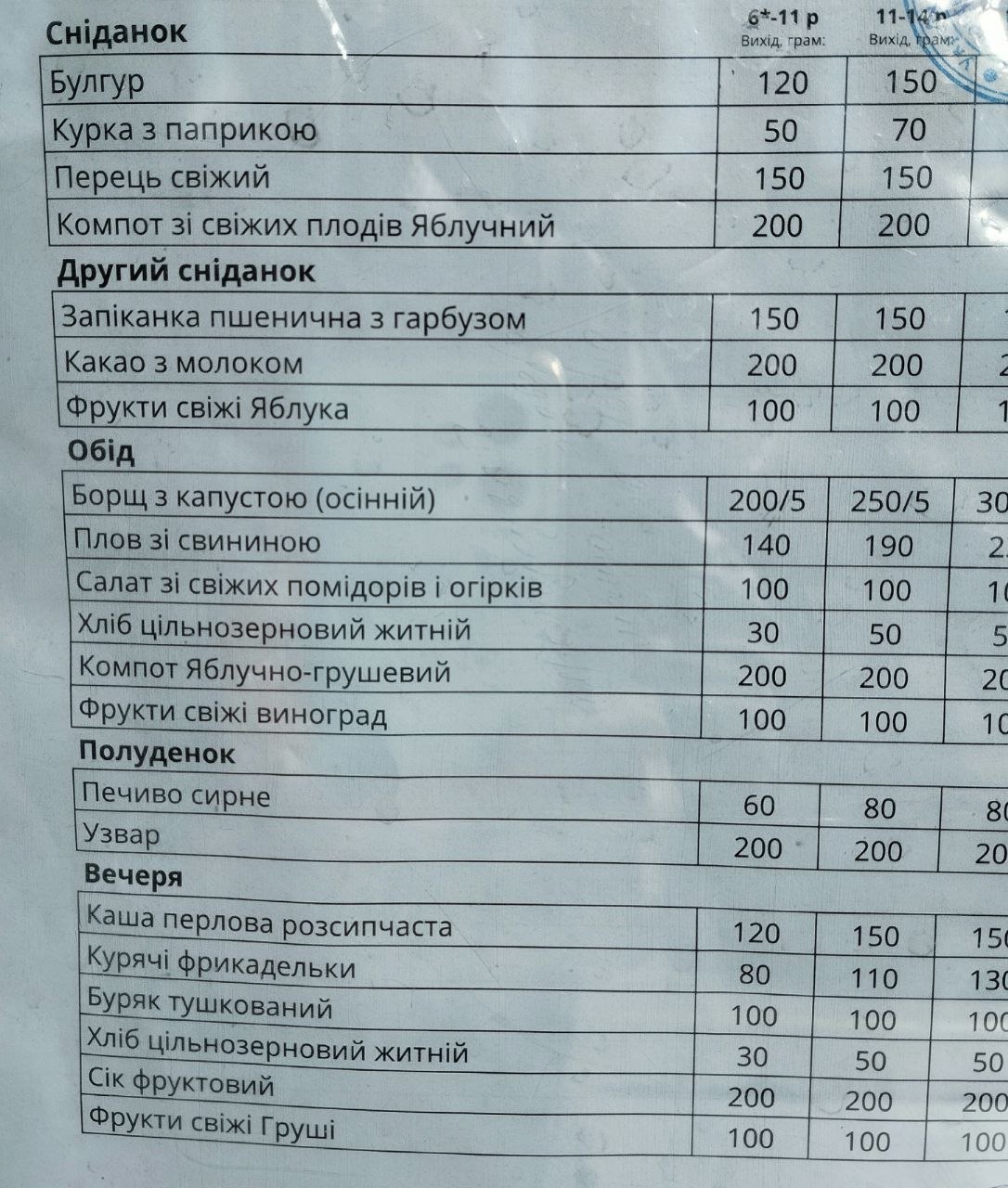- фрукты — 4–5 раз в неделю