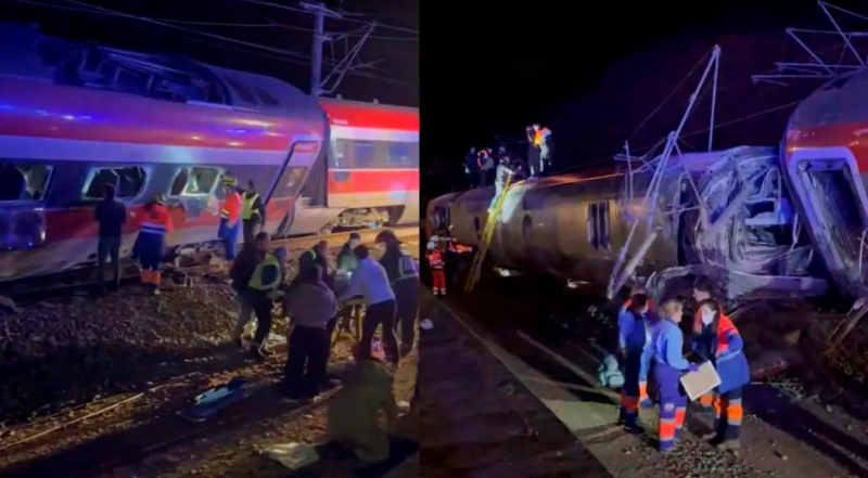 Вчера вечером на юге Испании произошла очень серьезная железнодорожная катастрофа. Поезд AVE Iryo, следующий по маршруту Малага-Мадрид, на высокой скорости сошёл с рельсов на участке дороги недалеко от станции Адамус, и три его последних вагона вылетели на соседний путь, где в них врезался поезд AVE Renfe, следующий по маршруту Мадрид-Уэльва, после чего два передних вагона этого поезда упали с четырехметровой насыпи.