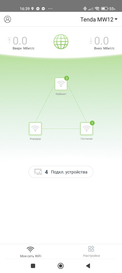 Настраивается система через приложение Tenda Wi-Fi, которое есть под Android и под iOS. (Но, впрочем, замечу, что тут можно и вовсе обойтись без каких-либо настроек: система сразу создаст работающую сеть из основного роутера и двух сателлитов.)