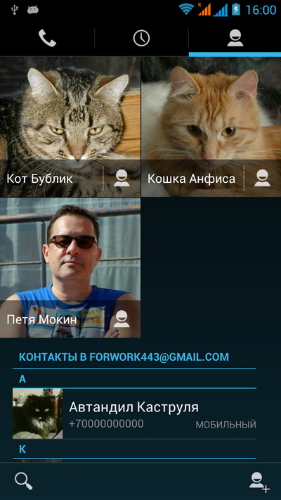 Список контактов из гугловского облака.