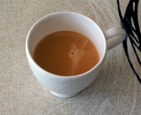 Молоко взбилось, как полагается, наливаем его в чашку с кофе - получаем отличную порцию капучино.