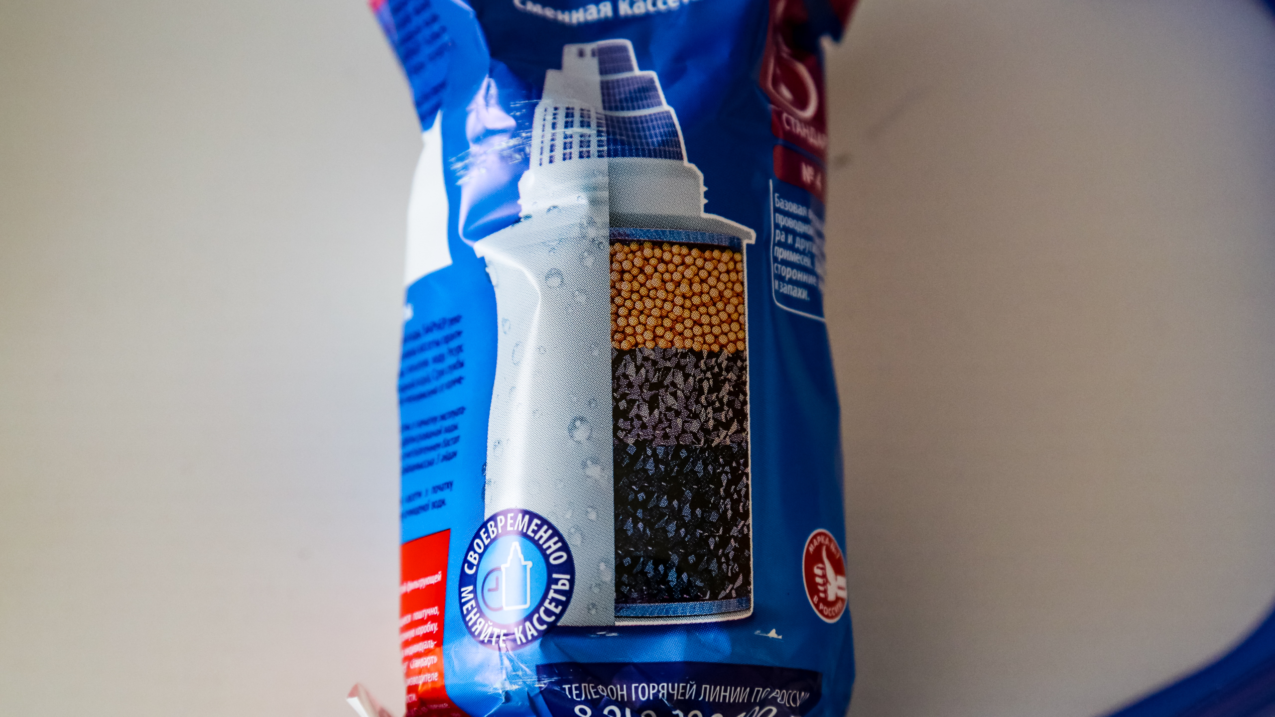 Запасные фильтры запечатаны, на упаковке фильтра "Барьера" нарисовано внутреннее содержимое его фильтра. (Короткий спойлер - на самом деле внутри это все выглядит совершенно не так, но об этом позже.)