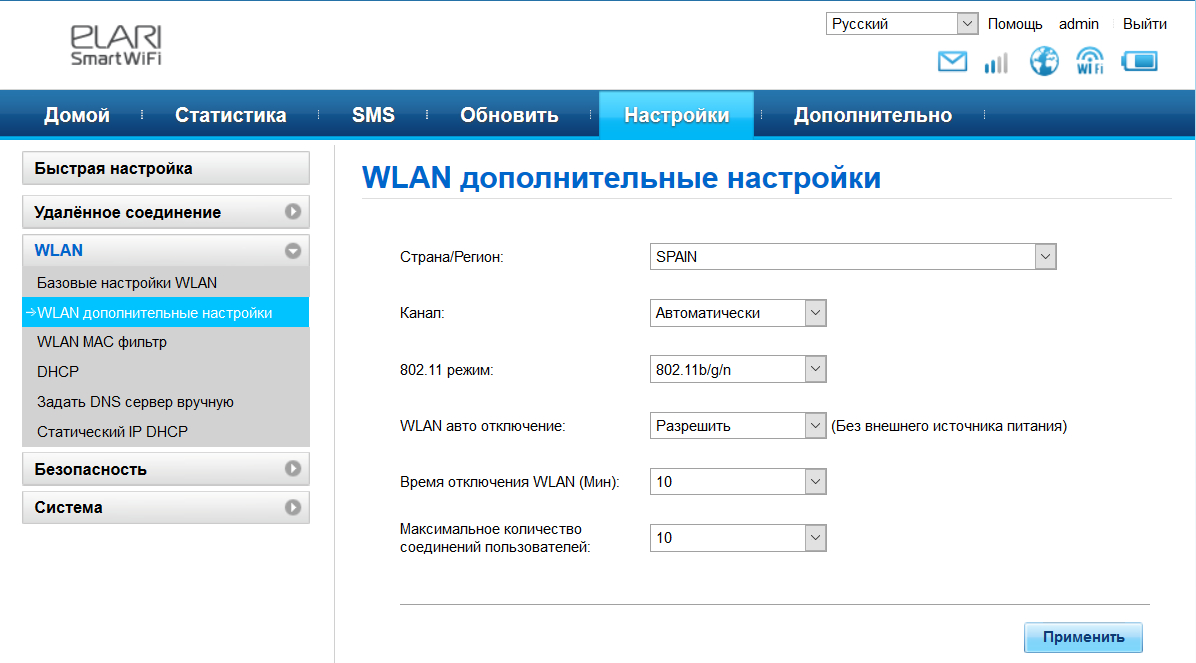 Настройки сети роутера - здесь можно поменять режим аутентификации, задать другой пароль, запретить показ названия сети.