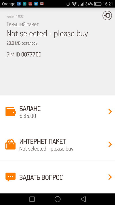 Далее появляется вот такое окно. Там нужно выбрать соответствующий пакет. При нулевом балансе трафика система оставляет 20 Мб - чтобы вы смогли выбрать нужный пакет. Если по каким-то причинам эти 20 Мб будут израсходованы, то тогда подключение придется делать через Wi-Fi. На балансе средств первоначально будут доступны €5.