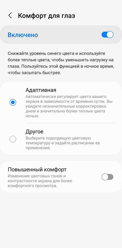 Можно скрывать вырез камер, регулировать режим комфорта для глаз.