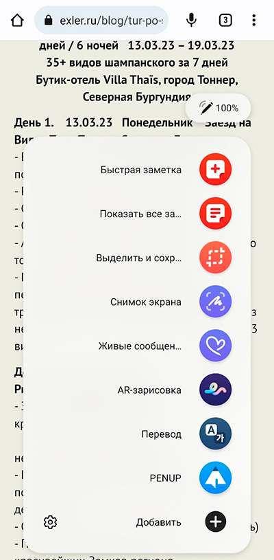 При доставании пера на экране возникает специальная кнопка, при нажатии на которую появляется меню приложений, с которыми можно использовать стилус. И туда можно добавлять и другие приложения.