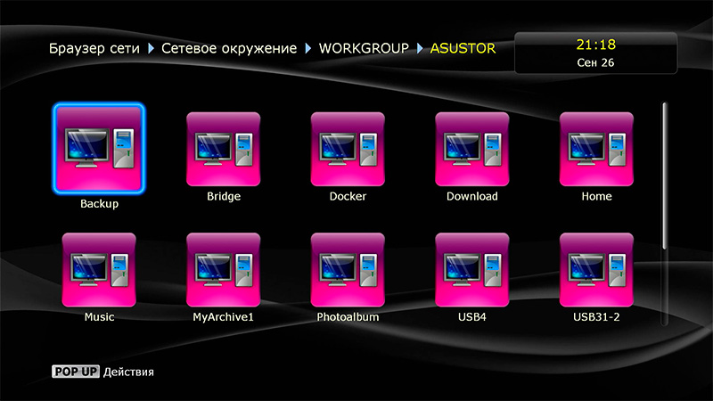 Посмотрим на то, как работает навигация по различным источникам - прежде всего, по накопителям домашней сети.
