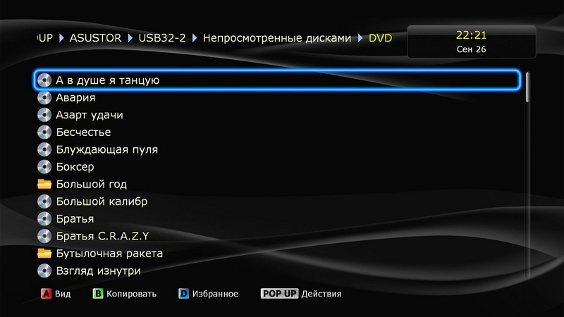 После этого появился стандартный интерфейс медиаплееров Dune, который мне хорошо знаком (он настраивается и варьируется в широких пределах).