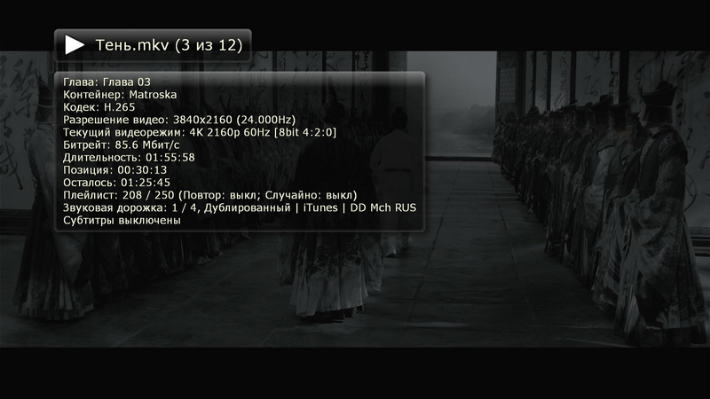 Как обычно у Dune, аудиодорожки и субтитры легко меняются и гибко настраиваются. К тому же Dune умеет искать субтитры на OpenSubtitles.org и подключать их - я этим нередко пользуюсь.