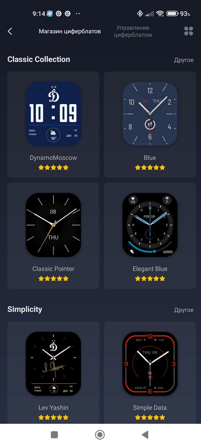 Циферблаты меняются прямо на часах (длинное нажатие), новые циферблаты подгружаются в часы через приложение.