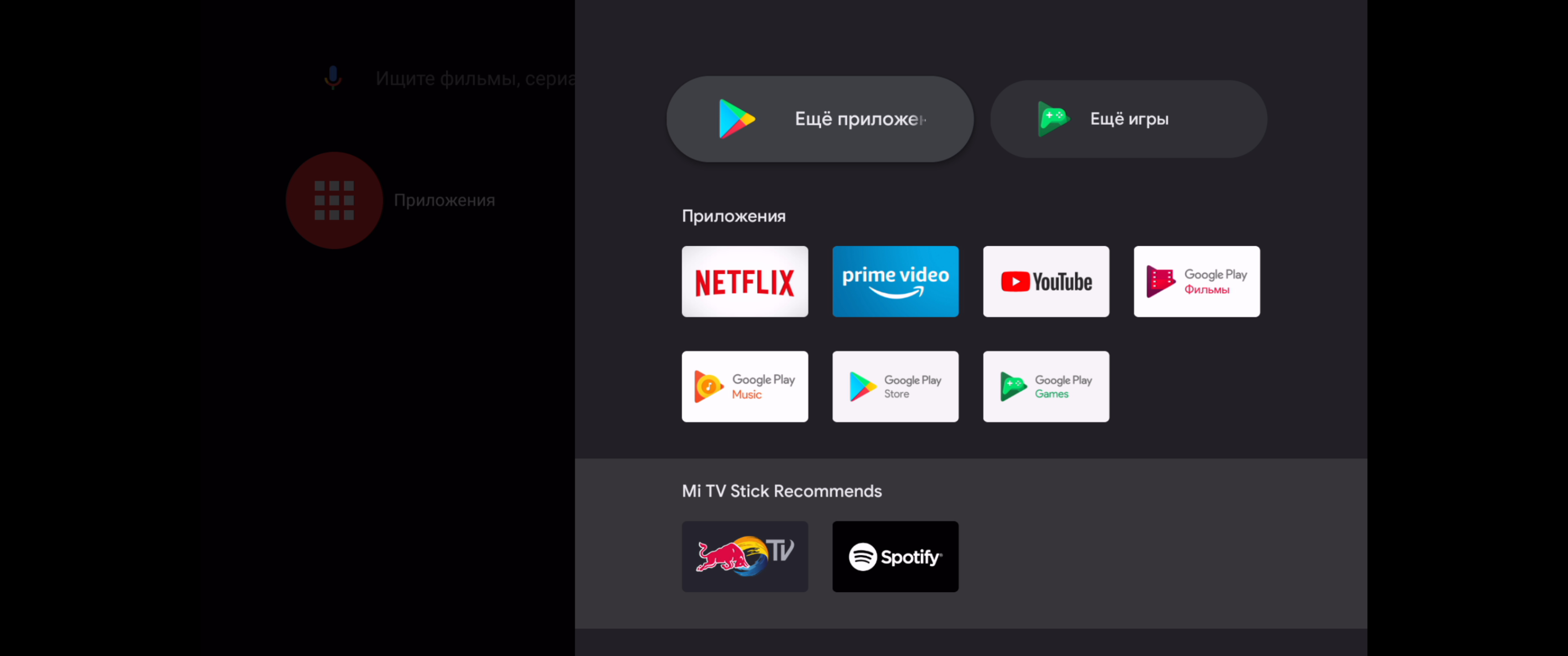 Ну и все, появляется главное окно программы. Интерфейс - стандартный Android TV. Настраиваемые каналы, окно приложений, голосовой поиск, настройки.