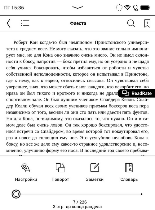 Как обычно, листать страницы вы можете как нажатиями в правой или левой части экрана (что особенно удобно в случае больших ридеров), так и с помощью кнопок листания.