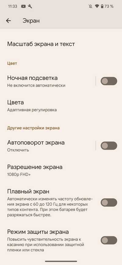 Настройки экрана. Тут нельзя принудительно выставить 120 Гц, но можно разрешить смартфону поднимать частоту так, как он считает нужным.