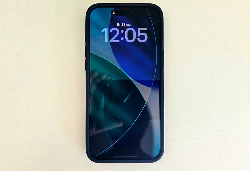 Рамки дисплея - очень тонкие, одинаковые со всех сторон. Вверху экрана по центру располагается традиционный для айфонов Dynamic Island (динамический остров), на который может выводиться различная полезная информация.
